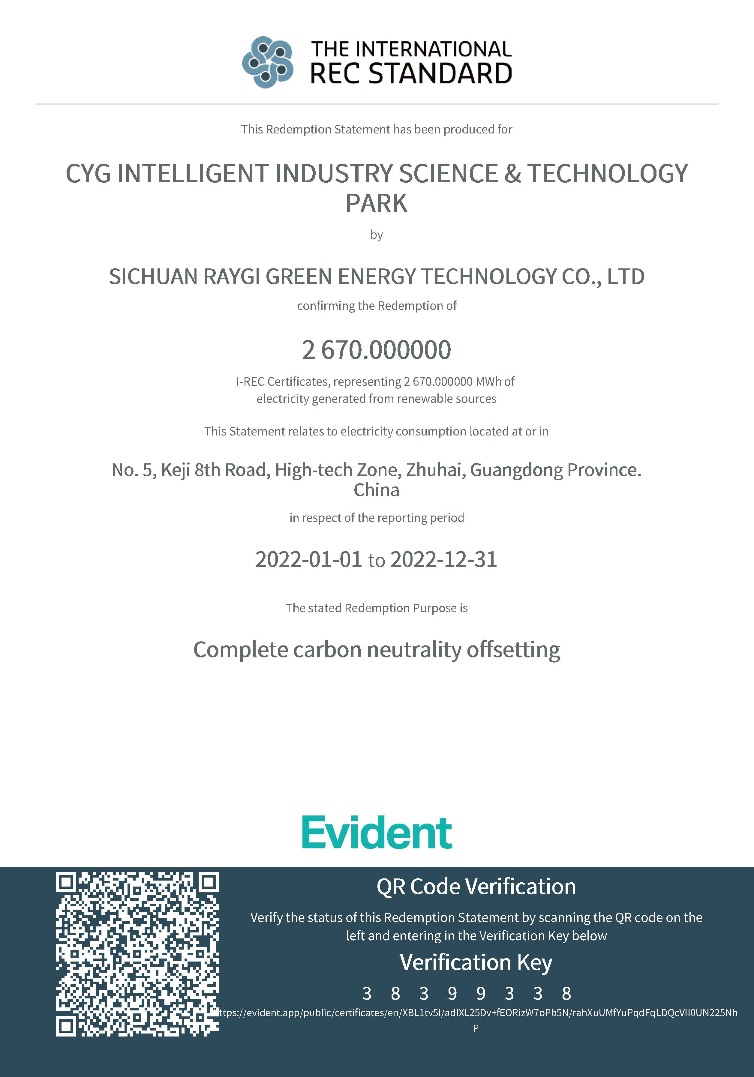 截至2022年12月31日,东升国际官网智能产业科技园通过屋顶光伏系统、储能系统综合能源项目自主减少了超百吨二氧化碳当量排放,剩余部分通过购买并注销I-REC国际绿证及VCUs自愿减排指标的形式实现了抵消。